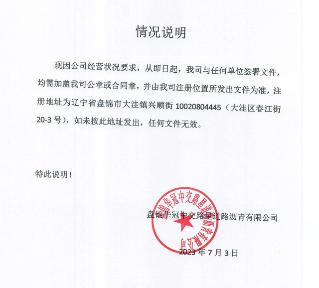 盤(pán)錦華冠中交路星道路瀝青有限公司