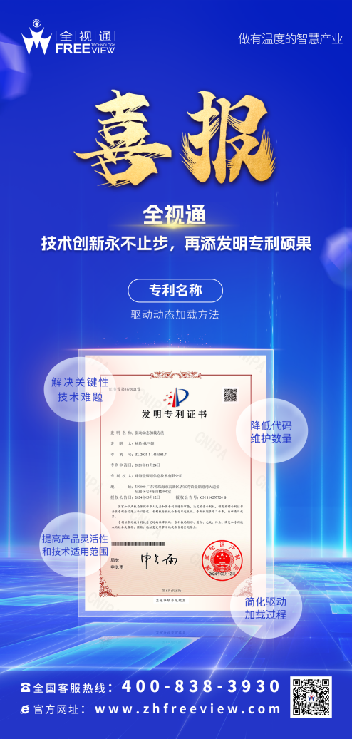 ? ? ? ? 近日,全視通再次取得了令人矚目的創(chuàng)新成果,成功獲得了國家知識產(chǎn)權(quán)局授予的“驅(qū)動動態(tài)加載方法”發(fā)明專利證書。專利是企業(yè)管理現(xiàn)代化的重要標志,是反映企業(yè)自主創(chuàng)新和核心競爭力的“硬指標”。這一技術(shù)碩果的取得,不僅彰顯了全視通在技術(shù)創(chuàng)新領(lǐng)域的實力,更為企業(yè)的高質(zhì)量發(fā)展注入了新的科技動能。