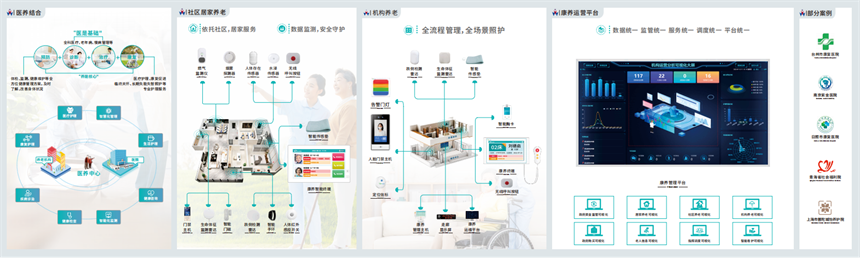 推動“互聯(lián)網(wǎng)+大養(yǎng)老”生態(tài)系統(tǒng),形成以政府主導(dǎo)的智慧養(yǎng)老服務(wù)體系,覆蓋醫(yī)養(yǎng)結(jié)合、機構(gòu)養(yǎng)老、社區(qū)養(yǎng)老、居家養(yǎng)老等不同的養(yǎng)老服務(wù)模式,打造智慧化解決方案。