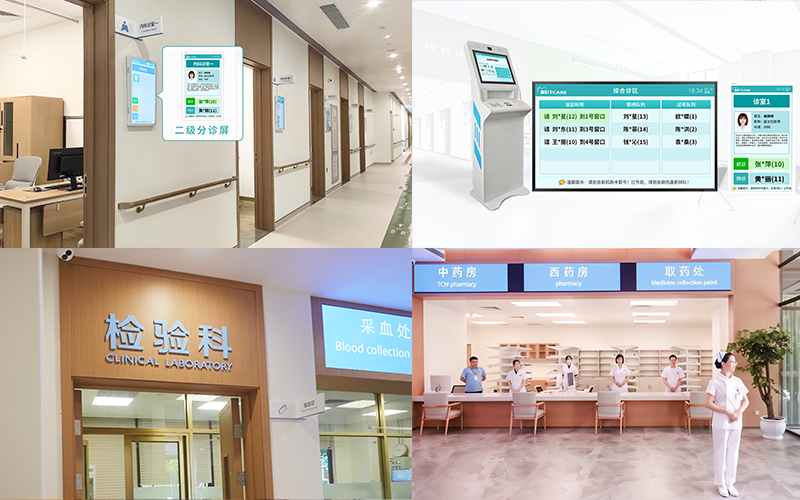 在醫(yī)療樓,配置智能報到終端機、一級分診屏、二級分診屏等智能硬件,長者可以清楚地知道當前的排隊情況,減少了在樓內(nèi)無序等待的時間。在候診區(qū)、藥房等區(qū)域,系統(tǒng)可智能顯示或語音告知長者何時接受就診、取藥等服務,有效緩解長者的焦慮感。